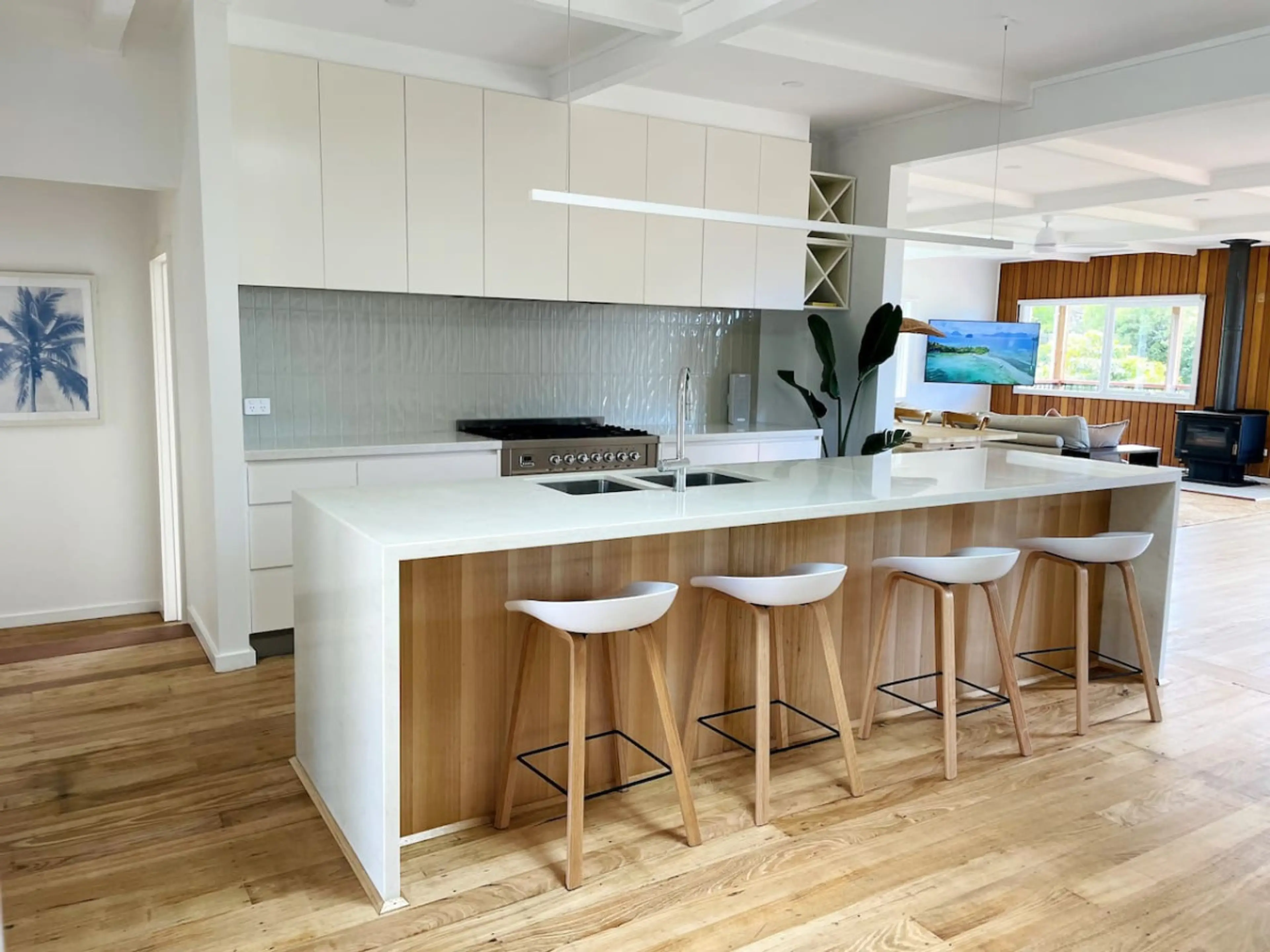 Positive: Lake Tyers is a pretty spot, and the property has a view of the sea and is close enough to hear the sound of the surf. Inside, the house is spacious and light, and would accommodate a family or two couples easily. The kitchen has everything one would need, with modern appliances. The e-mail with lockbox instructions had gone astray but the host responds quickly to communications so it was all sorted out without any problem or delay. On arrival we found that the host had left a bottle of wine and a few things to eat which was a generous touch. And the heater had been left on for us which was much appreciated, as it was during winter. Also the wood stove was much appreciated. The internet is Starlink so the speed is pretty decent.
